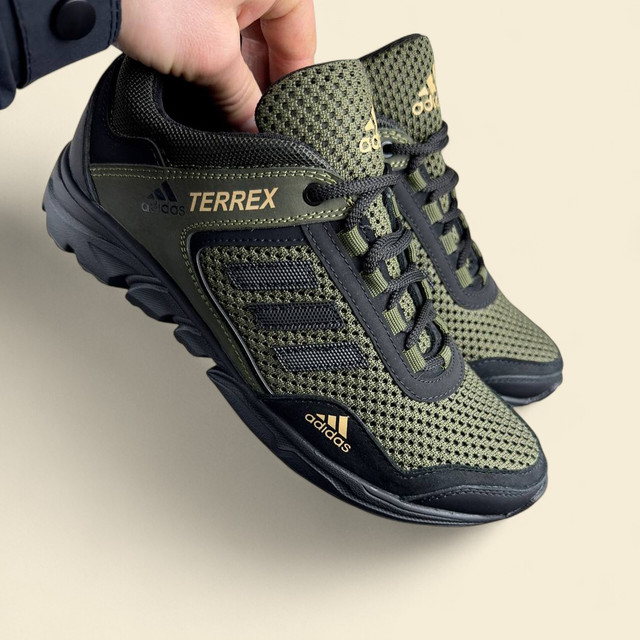 Чоловічі літні кросівки (текстиль сітка, шкіра) кроси хакі, чоловіче взуття літо, розмір 40 41 42 43 44 45