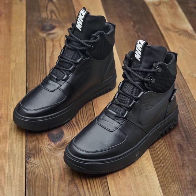 Чоловічі зимові шкіряні кросівки, черевики (натуральна шкіра) чорні на хутрі, чоловіче взуття на зиму, розмір 40 41 42 43 44 45