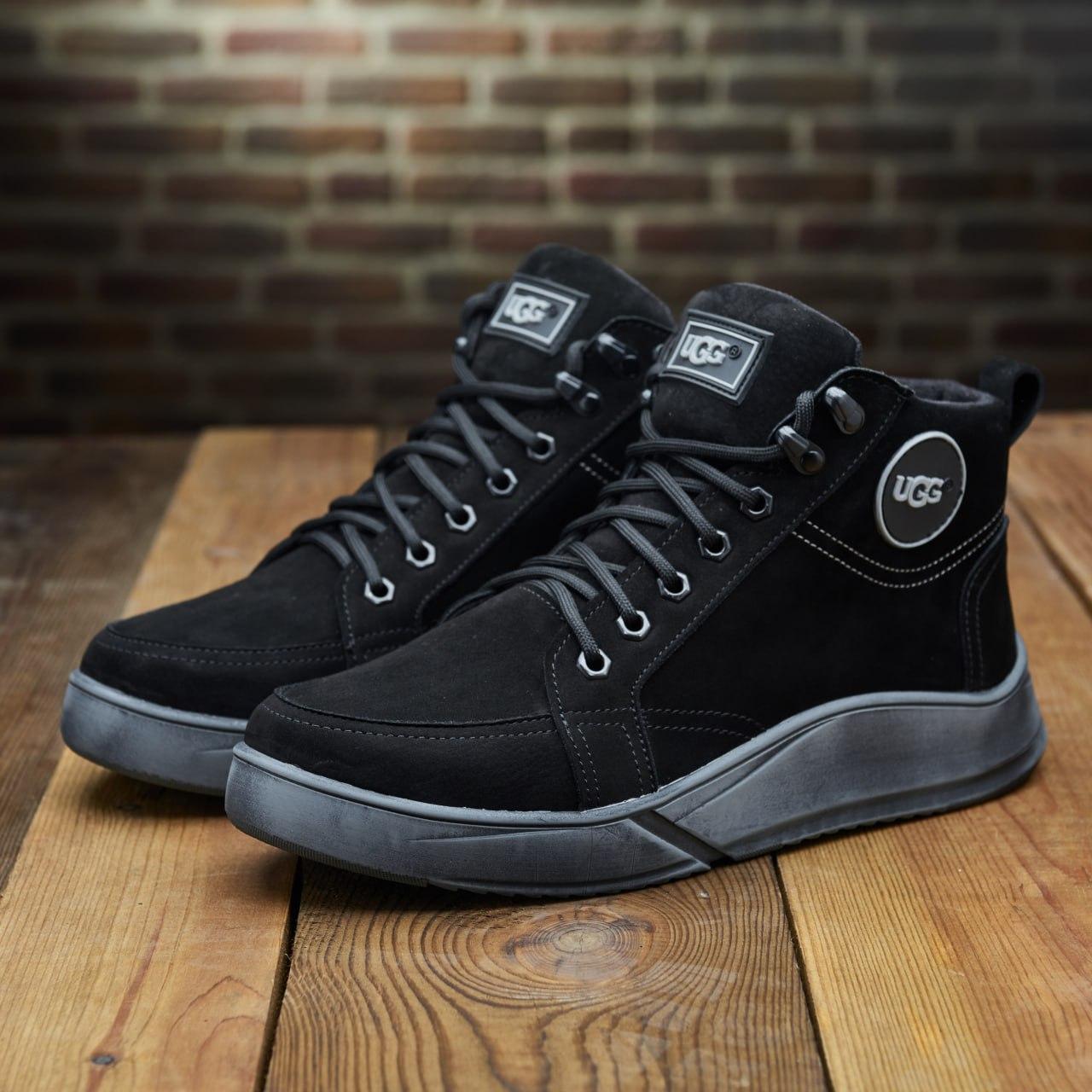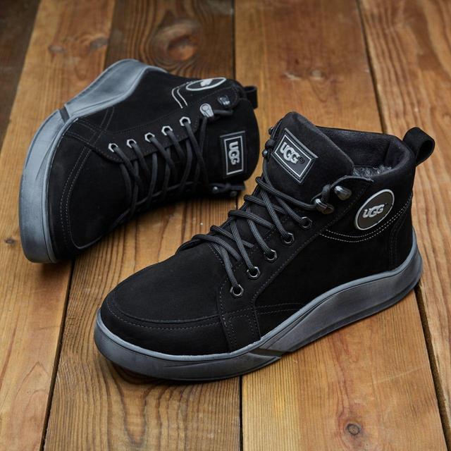 Чоловічі зимові нубукові черевики/кеди (натуральний нубук) чорні на хутрі, чоловіче взуття на зиму, розмір 40 41 42 43 44 45