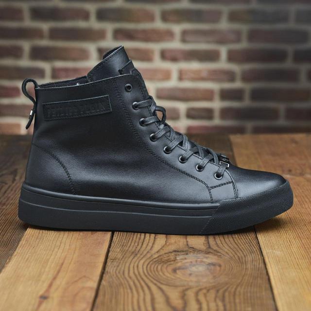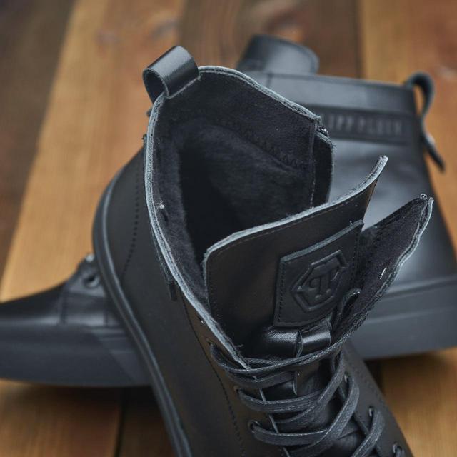 Чоловічі шкіряні зимові черевики чорного кольору утеплені на блискавці, розміри повномірні: 40, 41, 42, 43, 44, 45