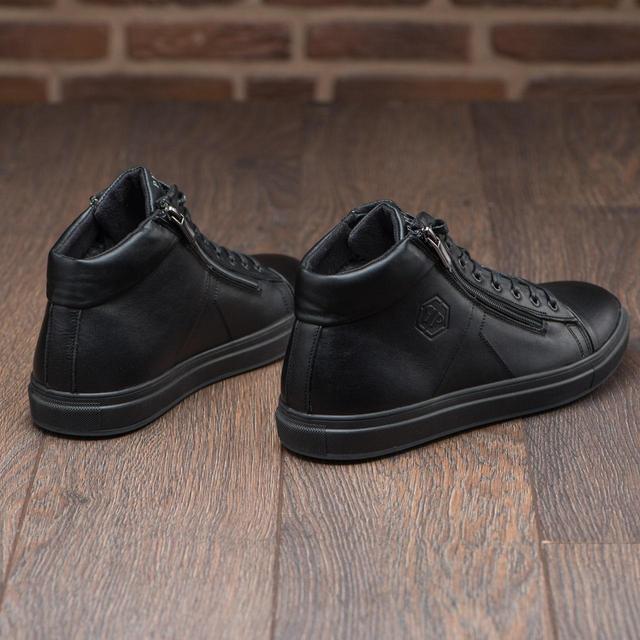 Чоловічі шкіряні зимові черевики чорного кольору утеплені на блискавці, розміри повномірні: 40, 41, 42, 43, 44, 45