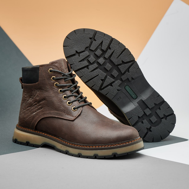 2. Довговічність: Натуральна шкіра в чоловічому зимовому взутті, як основний матеріал, має високу міцність і стійкість до зовнішніх впливів, що робить черевики довговічними та стійкими до зношування.