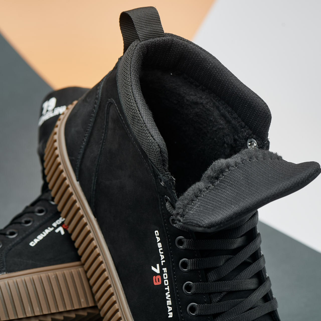 Чоловічі нубукові зимові черевики чорного кольору утеплені, розміри повномірні: 40, 41, 42, 43, 44, 45