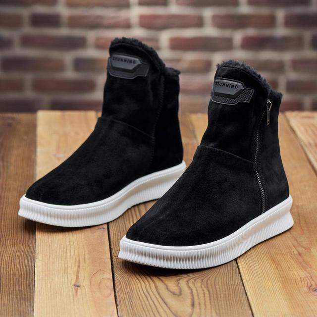 Чоловічі зимові шкіряні черевики (натуральна замша) на блискавці чорного кольору на хутрі, чоловіче взуття на зиму, розмір 40 41 42 43 44 45