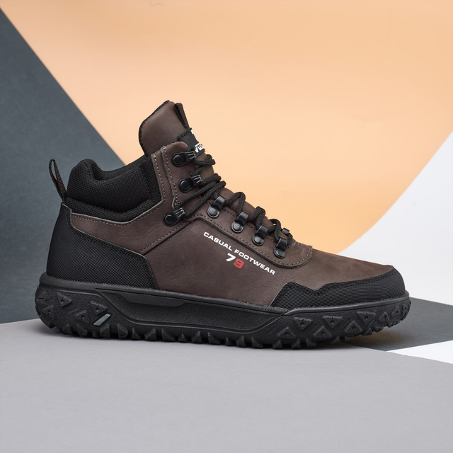 Чоловічі зимові високі кросівки в коричневому кольорі з натуральної шкіри - це міцне, надійне чоловіче взуття на холодний період. Головна якість таких черевиків для чоловіків на зимовий сезон - це зносостійкість. Шкіряне зимове чоловіче взуття прослужить удвічі, а то й утричі довше, ніж вироби зі штучних аналогів. Натуральна шкіра пристосовується до температурних змін, добре зберігає тепло, не тріскається на морозі, пропускає повітря, даючи змогу ногам дихати і не даючи надто потіти. Натуральний внутрішній утеплювач збереже тепло і забезпечить комфорт вашим ногам. Підошва зимових чоловічих черевиків з протиковзким покриттям забезпечує надійне зчеплення з поверхнею, зменшуючи ризик ковзання на льоду та снігу.