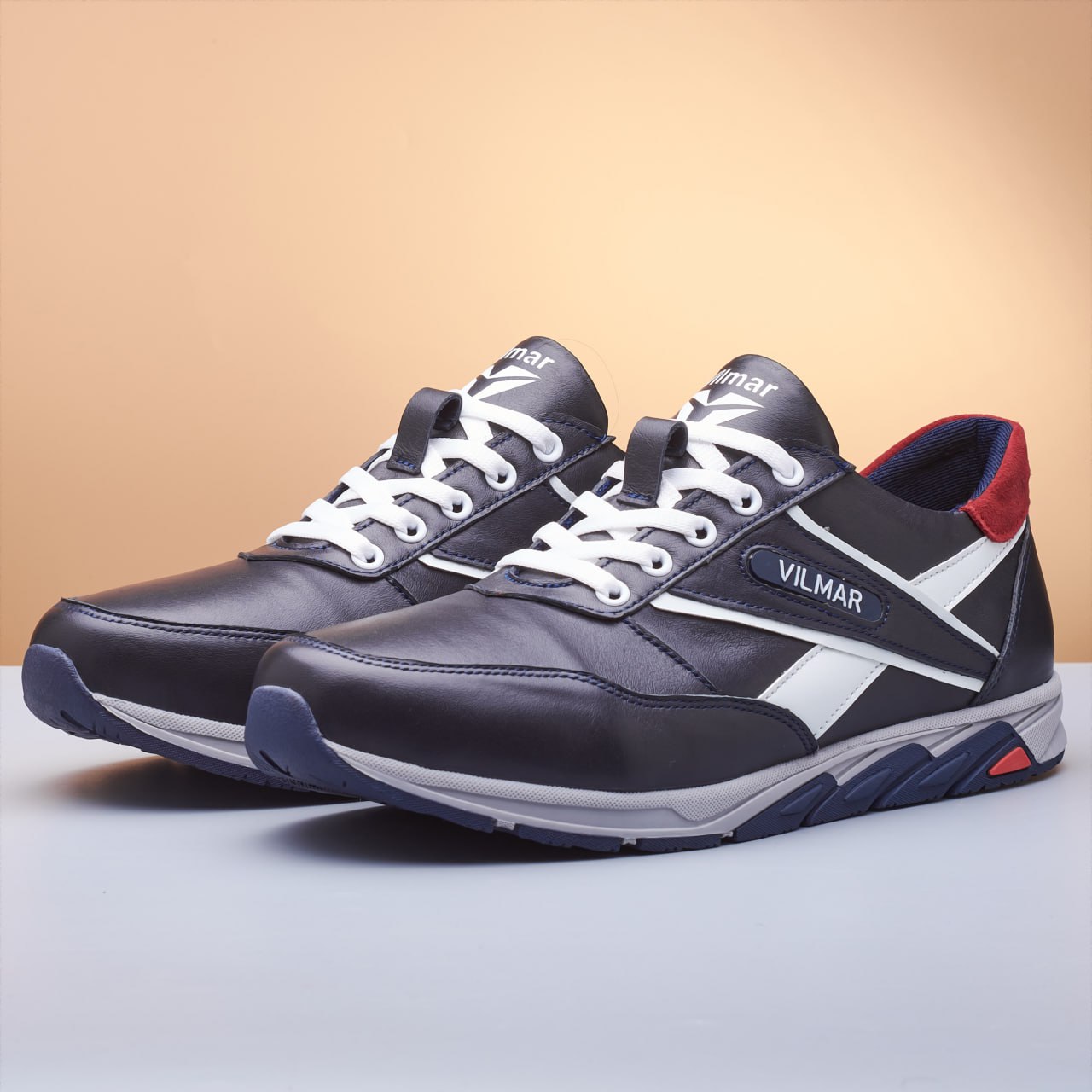 Чоловічі шкіряні кросівки Vilmar темно-сині демісезонні для чоловіків на весну осінь, розмір 39 40 41 42 43 44 45 46